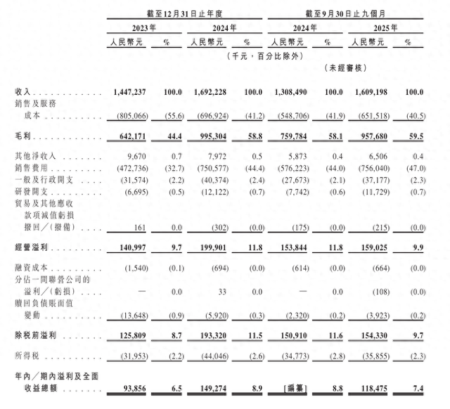 伴随转型而来的是毛利率的迅猛提升,从2023年的44.4%增至2025年前三季度的59.5%。